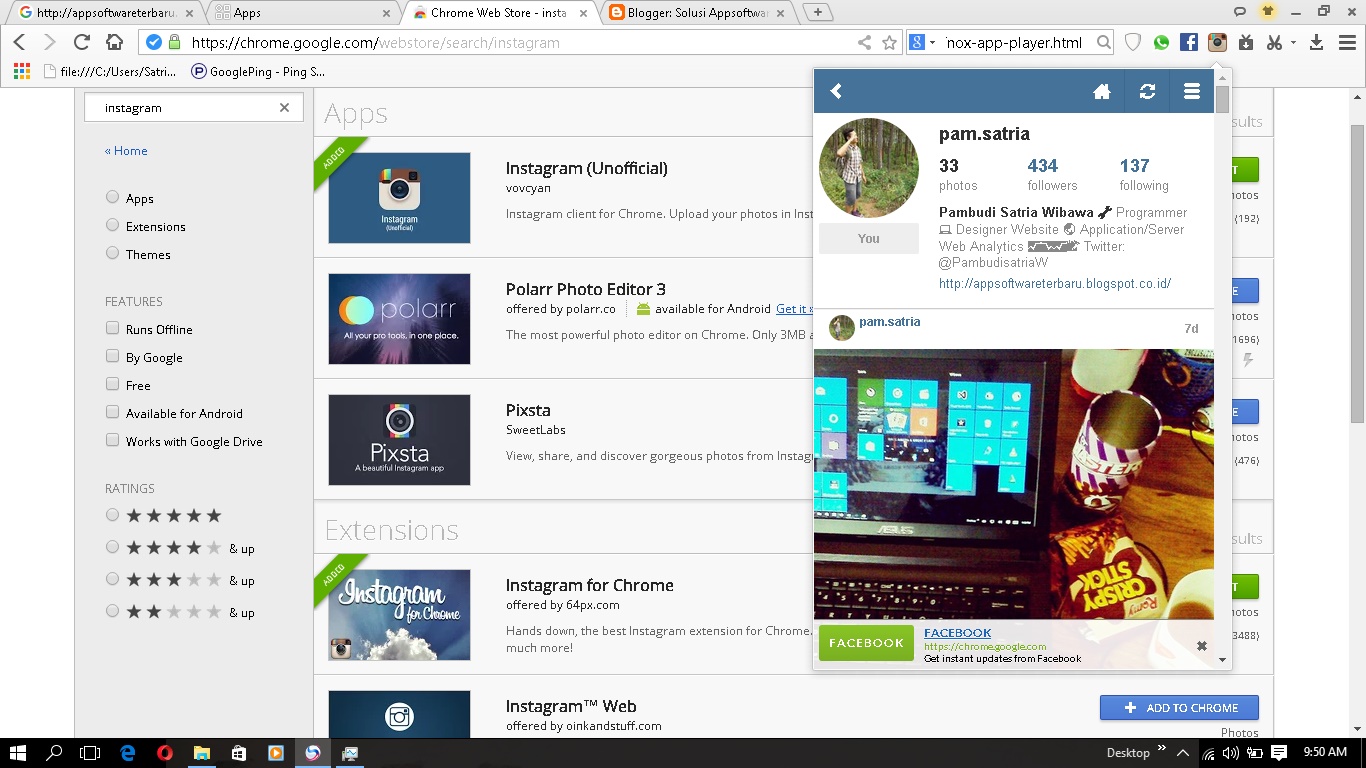 - Add to Chrome install Instagram(Unofficial) untuk upload foto